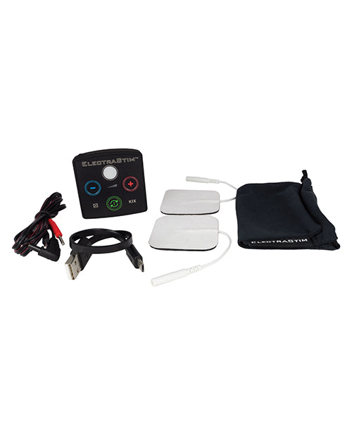 If you're a brand new to electro-sex and experimenting for the first time with this unique type of play, you won't know which stimulation level is right for you. Don't worry, none of us do at the start! With KIX, we've removed numbers entirely for a simpler experience that's geared up for anyone just starting their electro-sex journey. Rather than the traditional numerical intensity levels of other stimulators, KIX phases gently through a color spectrum as you increase or decrease the sensations. Starting with cooler tones to represent lower intensities and ending in warmer, richer colors at the maximum output, not only does KIX look striking, but encourages you to experiment by feel. Instead of a ‘stepped' approach to intensity, KIX phases with silky smoothness between levels for a steady progression that's literally at your fingertips. Up and Down touchpads allow for seamless progression through the levels with a light touch; ideal if you're looking for a discreet addition to your play. KIX also has 5 built-in stimulation patterns which includes a unique “Sweep n Keep” mode where the frequency of the stimulation can be modified alongside intensity for a surprisingly large range of sensations. Boasting a single output that's perfect for solo or partnered play, the pocket-sized KIX is also USB rechargeable and eco-friendly- lasting for around 3 hours of continuous play* KIX also comes with a set of conductive pads to let you play right out of the box. Key Features: Unique ‘color-phase' LED display. Single Output. Touchpad intensity controls. 5 pre-programmed patterns. Pocket-sized design with soft-touch finish. USB rechargeable - approx. 3 hours continuous play (depending on intensity). Pack Contents:­­ KIX Stimulator. Stimulator output cable. 2 x self-adhesive electro pads. USB charging cable.. Microfiber storage bag Instructions (EN, FR, DE, NL, ES).