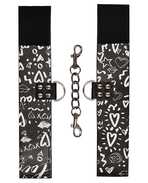 Shots Ouch Love Street Art Fashion Printed Hand Cuffs - Black