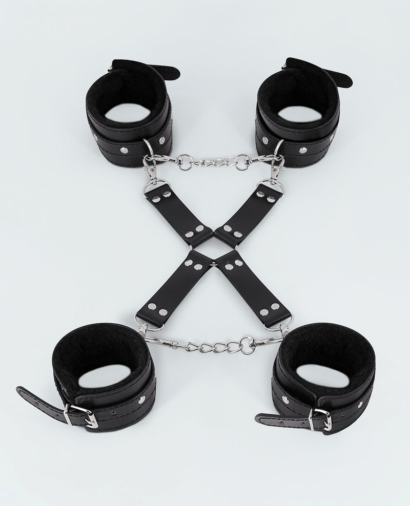 Lust PU Leather All 4's Fuzzy Cuff Set - Black