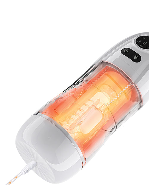 With its innovative screen display design, this male masturbator looks modern and functions well by showing you the vibration and suction intensities, as well as the remaining battery level. You'll never forget to charge the penis vibrator after use. The heated male masturbator takes you on a physical and sensual exploration journey by heating up to reach a human-like temperature and even helps to dry the tunnel after washing.