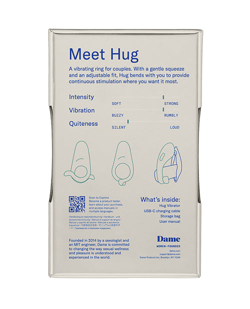 Hug is a vibrating ring for couples. With a gentle squeeze and an adjustable fit, Hug provides continuous stimulation where you want it most (read: clitoris or perineum).